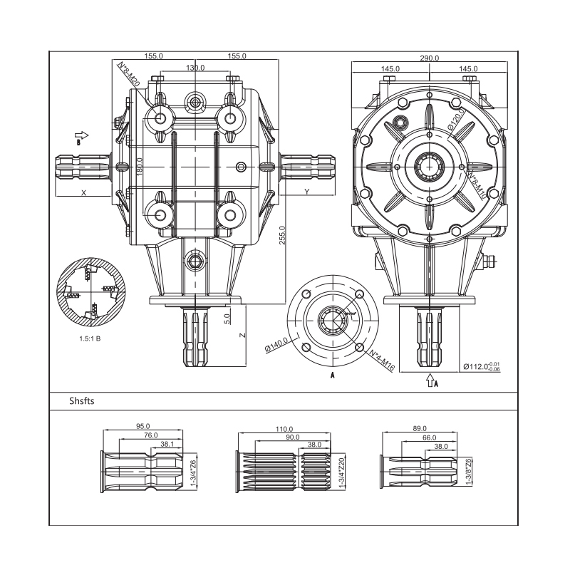 KLF-GC290 oferă o varietate de raporturi de transmisie, adaptabile la o gamă largă de diferite tipuri de echipamente de utilaje agricole, inclusiv concasoare de paie și mașini de reciclare a filmelor agricole. Angrenajele Gleason Bevel sunt fabricate cu o precizie ridicată, asigurând o precizie ridicată a ochiurilor de plasă, pierderi minime de transmisie și eficiență ridicată în transferul de energie. Produsul este proiectat cu un mecanism de ambreiaj unic. În timpul funcționării, când arborele de tăiere funcționează cu viteză mare, dacă tractorul oprește brusc intrarea de putere, inerția arborelui tăietor poate fi prea mare. Ambreiajul unidirecțional protejează efectiv angrenajele și arborele de daune din cauza acestei opriri bruște.