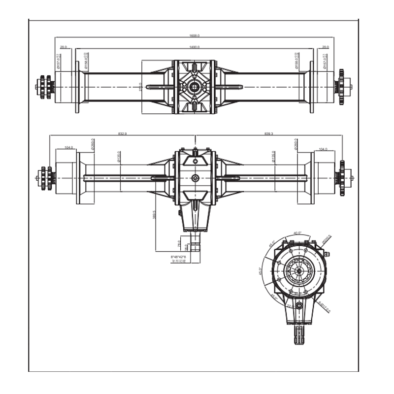 Această cutie de viteze este o cutie de viteze mare de transmisie cu balot rotund, intrare de putere a tractorului. Prin intrarea cutiei de viteze, ieșirea de pe ambele părți determină mașina să funcționeze și să transmită puterea. Are o țeavă sudată de tip împărțit și o structură de jumătate ax. Înlocuirea ușoară și întreținerea și proiectarea nu sunt limitate de dezavantaje, cum ar fi lungimea. Flanșa capete de pe ambele părți folosesc rulmenți importați fără întreținere pentru o durată de viață mai lungă. Cutia de viteze de tip non-tracțiune realizează avantajele dimensiunilor și lejerității mici și atinge aceeași eficiență de transmisie. Proiectarea KLF9.0-HL01 este derivată din intenția de proiectare inițială a modelelor importate, cum ar fi American Vermeer și Agco și se bazează pe condiții de utilizare internă și străină. Am efectuat un upgrade cuprinzător folosind o metodă de legătură a podului din fontă și design unibody, care respectă standardele internaționale.