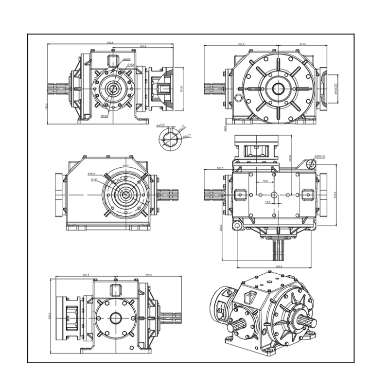 Această cutie de viteze este utilizată pentru intrarea de putere a tractorului în fața îndepărtării prafului și a frământării barale pătrate. Prin cutia de viteze, puterea este transmisă la două pompe hidraulice și dispozitivul de zdrobire. Pompa hidraulică transmite energie hidraulică către cealaltă parte a mașinii pentru a completa cerințele de funcționare ale mașinii.